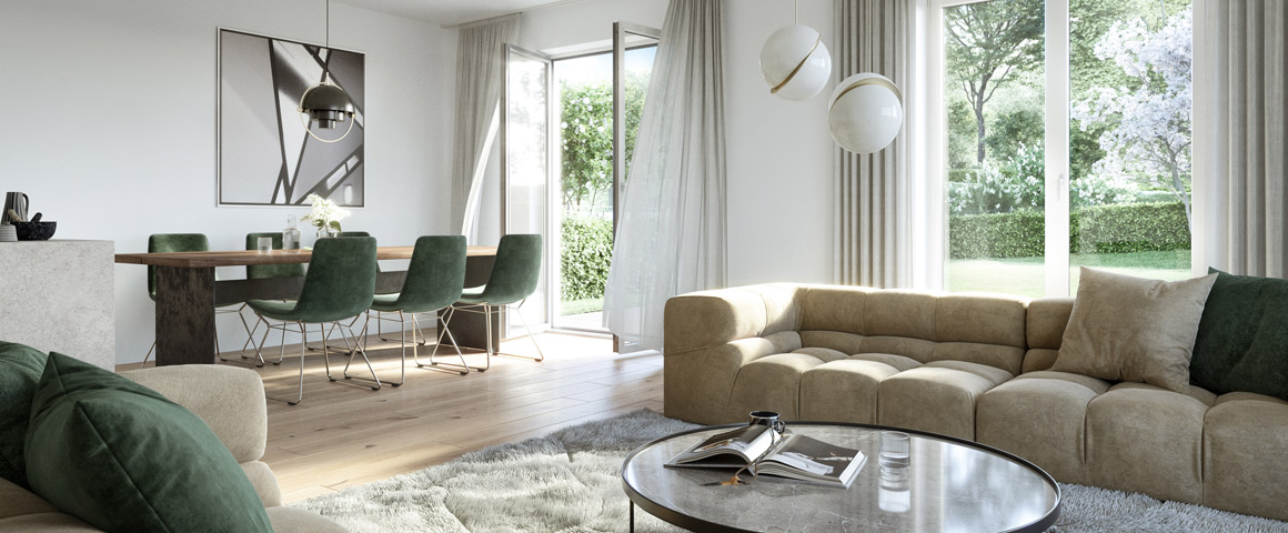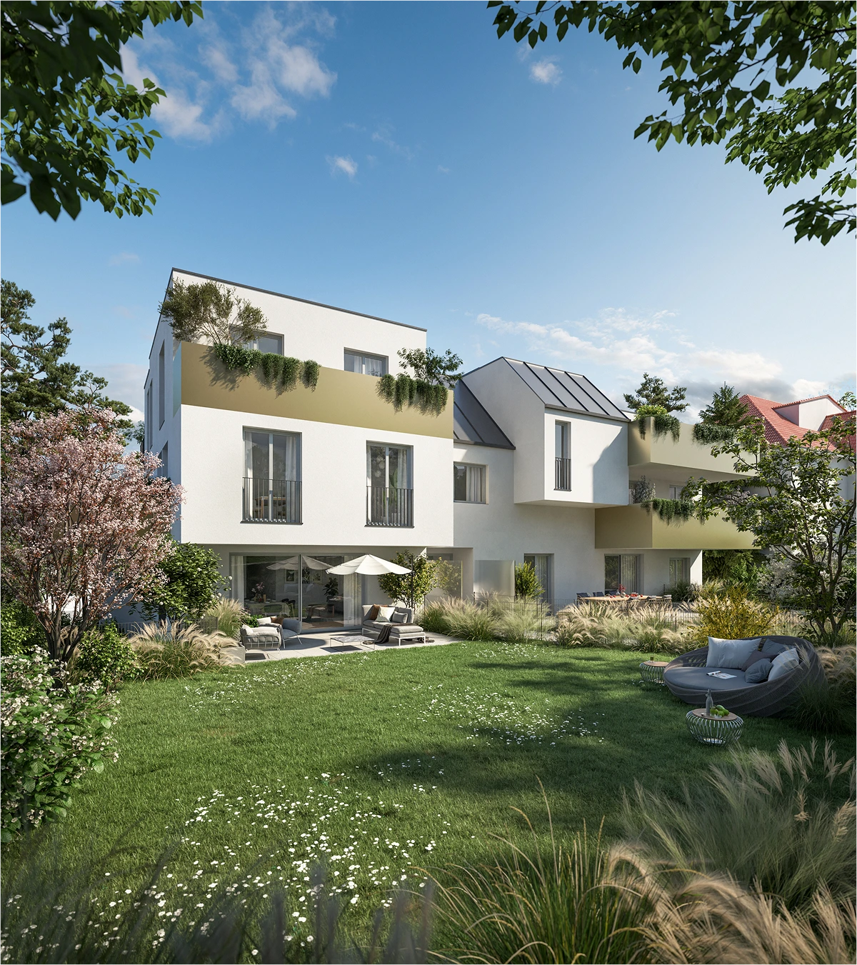 Hier erwarten Sie hochwertige Wohnungen von großzügigen 58 bis 158 m² mit individuellen Gärten, Balkonen oder Terrassen, die zum Entspannen im Freien einladen. Modernste Ausstattung, durchdachte Grundrisse und nachhaltige Technologien wie innovative Luft-Wasser-Wärmepumpen sorgen für erstklassigen Wohnkomfort bei niedrigen Betriebskosten.